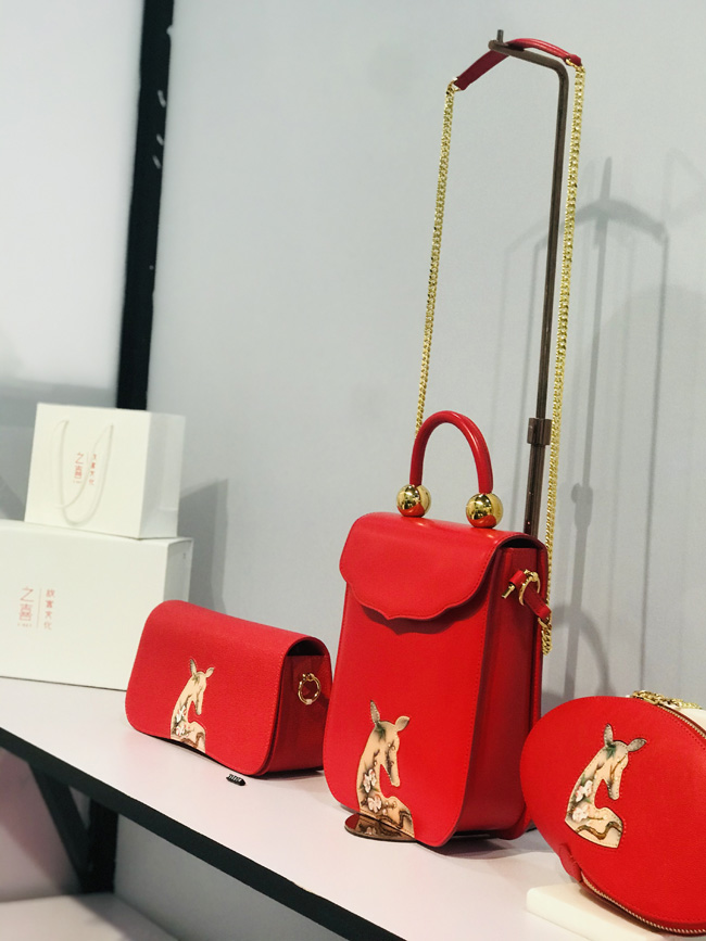 Anna之喜是故宮博物院授權(quán)合作唯一高端皮藝品牌。此次在展會(huì)陳列包款為「紫禁瑞鹿」系列及之喜&故宮聯(lián)名出品「千里江山」「吉慶有余」「如意海棠」中國盤系列!紫禁瑞鹿系列產(chǎn)品創(chuàng)作靈感來自《清宮獸譜》鹿圖,在傳統(tǒng)文化中,“鹿”為神奇之瑞獸,“鹿” 與 “祿”諧音,身姿神圣而高貴,寓意“福祿”,設(shè)計(jì)師以故宮博物院藏品 《清宮獸譜》 中的瑞鹿圖為產(chǎn)品圖案設(shè)計(jì)原型,提煉“鹿”剪影的靈動(dòng)外形,結(jié)合梅花枝頭寫實(shí)手法,將傳統(tǒng)美學(xué)與當(dāng)代藝術(shù)設(shè)計(jì)結(jié)合。「千里江山」中國盤,圖案來源:故宮博物院館藏北宋《千里江山圖》,產(chǎn)品亮點(diǎn):秉承簡約、精致、卓越的設(shè)計(jì)理念,將東方雅致生活美學(xué)與歐洲傳世皮藝制作工藝相結(jié)合,再經(jīng)雕刻師手工雕刻,彩繪師手工描繪用于產(chǎn)品設(shè)計(jì)當(dāng)中!